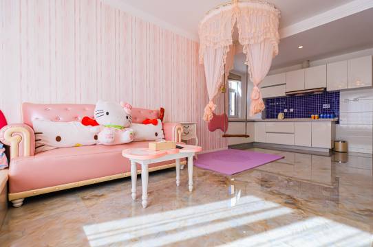 房间干净整洁,而且有秋千,小孩子很喜欢玩,还有男孩子的积木玩具,主题是hello kikt猫,满满的爱