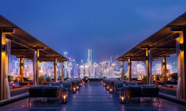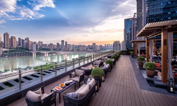 酒店七层的户外酒吧是一天疲惫之后放松的好地方,可以拍到包括洪崖洞的江边景观,惬意的晚间时光!