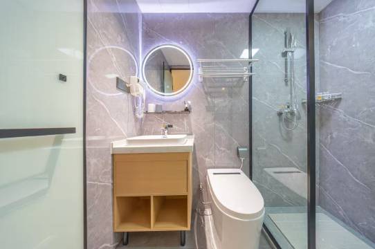 出差去住的,入住了一晚体验特别好,房间很干净卫生,马桶还是智能的,还配有一次性马桶垫,很细节,浴巾都是一次性的,很方便,前台的服务态度也很好,附近的生活设施也很完善,很满意的一次入住体验,下次还会选择这家,强烈推荐 !