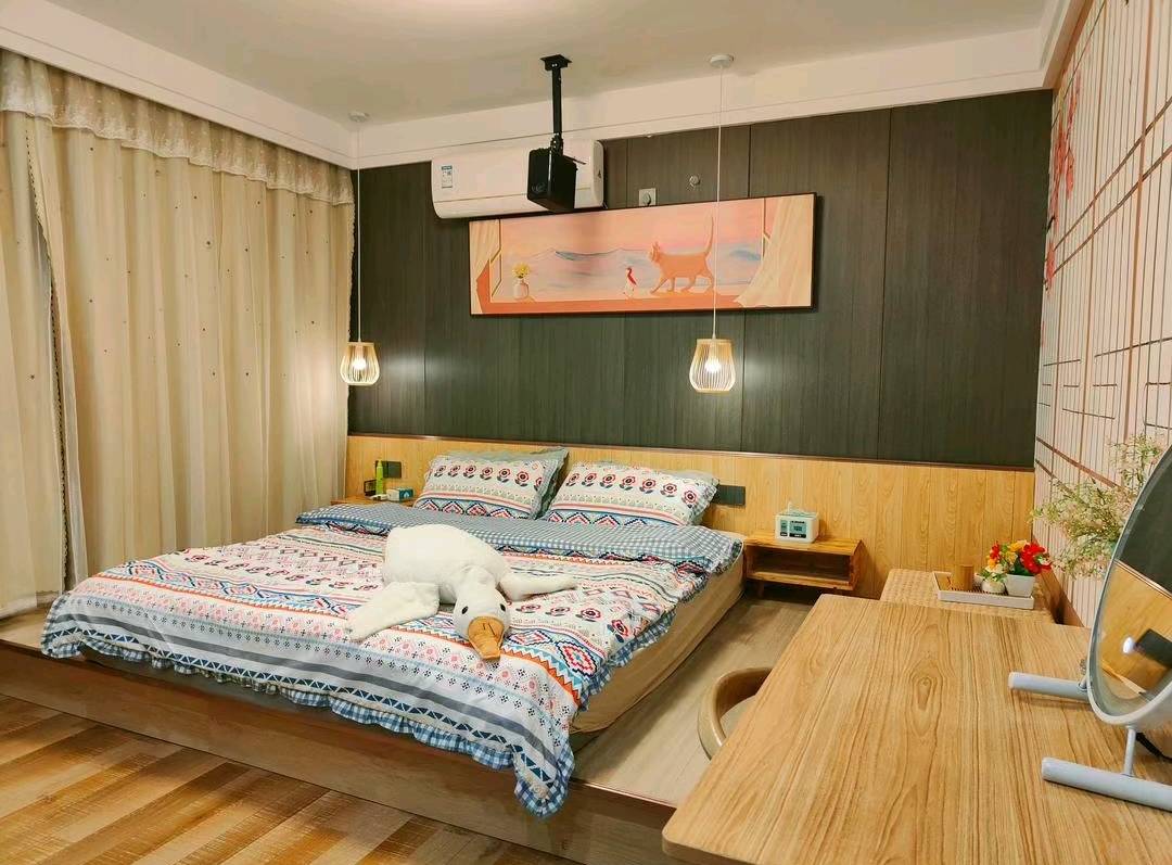 这住的日式榻榻米这个房间,孩子很喜欢这个房间,房间打扫得很干净,很大也很安静,投影仪非常清晰,晚上在房间看个电影很是惬意,价格不贵,性价比高,已经把她们家推荐给要来武汉玩的朋友了。老板姐姐人很好,有问必答,还给我们做旅游攻略,客栈就在户部巷步行街上,出门走一百多米就到长江大桥了,夜景很好看,武汉很好,下次还来。