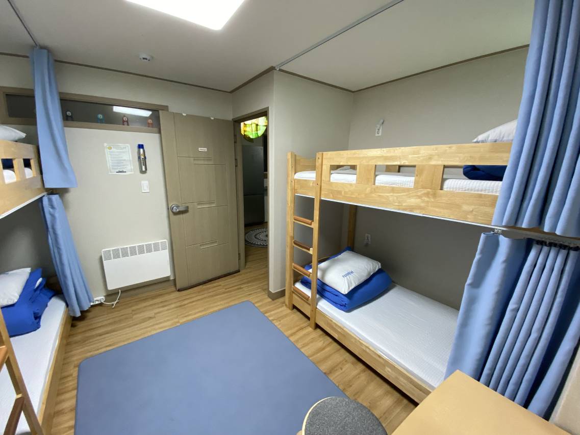 很棒的青旅,在那里遇到了很多友善的人。价格很便宜,因为它离济州市区有点远。公共区域和卧室都很不错。如果能多一个洗手间就更好了。