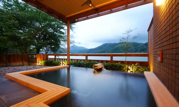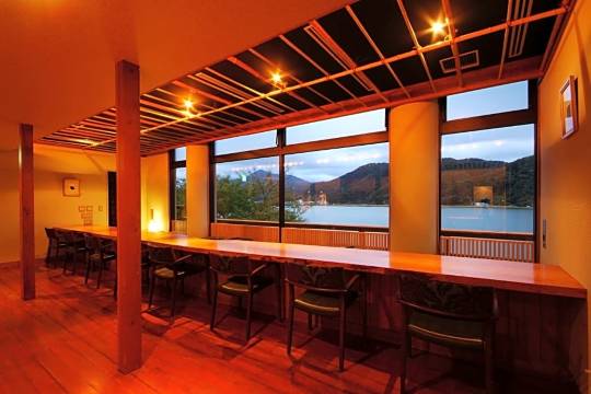 有接送车辆到车站, 酒店环境舒适,以及本身设有温泉。浴室设计与温泉环境十分相似, 而且能够一边浸浴一般观看河边景色。