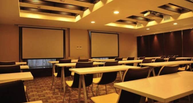 同时,酒店具有可容纳100人同时用餐的全日制中西自助餐厅,由多名厨师主理,精品粤菜、川菜、特色菜、港式点心风味各异;燕、鲍、翅等名菜用料考究。酒店大小两间会议室,设施设备达国际一流水准。
