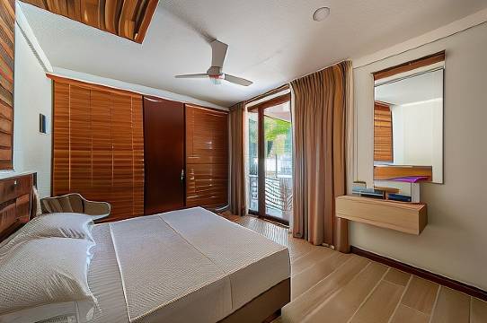 酒店前的沙滩和潟湖在富力度是最好的,来富力度看潟湖的住在这里就行。紧邻码头,上下快艇特方便,比基尼沙滩也不远,可以游泳。酒店有出海项目,我们没报上出海浮潜。房间也不错,洗澡热水有点少,要停下来烧一下再洗,在海岛上这个情况也正常,总之存下了美好的回忆。