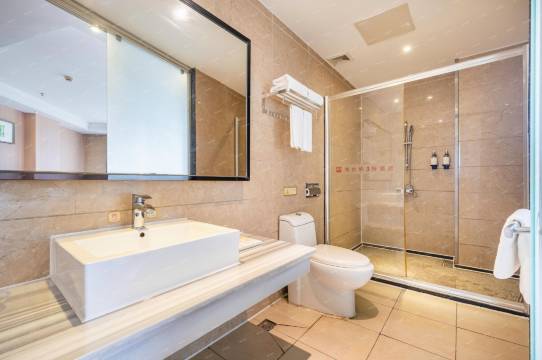 浴室的地面干得很快,排气扇功率很大,不会有潮气。客房内的办公区域宽敞实用,适合商务处理。淋浴热水来得很快,洗去了一身的疲惫。床品质量很高,亲肤透气。晚上睡觉时非常安静,一觉睡到了大天亮。这次的住宿体验非常满意。