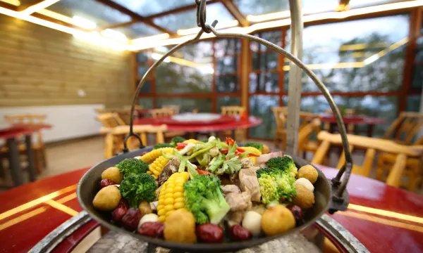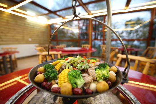 吊锅份量非常足,一个大锅,里面有腊猪肉,土鸡,野鱼,各种配菜,我们两大两小哼哧哼哧吃了两顿都没吃完。