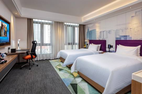 酒店环境优雅,追求国际化品味与风格,以“亲切友善”为理念,以“可靠周全”为目标,为您准备了:拥有希尔顿欢朋特色的“HUB”大堂,集欢迎聚会休闲商务功能于一体;舒达双专利床垫和生态认证床上用品,为您打造云端甜梦体验。
