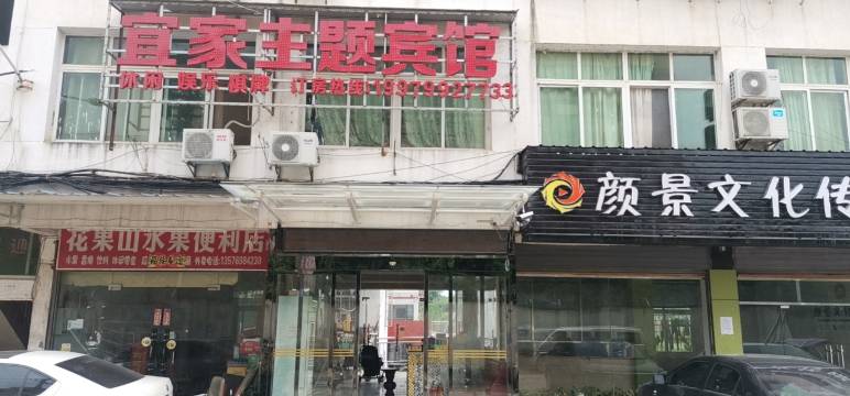 南昌宜家主题宾馆位于江西省南昌市新建区江西应用科技学院南门外后街花果山水果便利店旁。