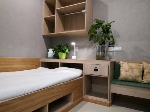 住着很舒服,我订的是女生宿舍,布局很贴心的在负一层,相对来说会很安静些,环境很干净,没有都有阿姨常驻在这边打扫!出去对面有一排吃的,附近也有一个大型的超市,总之很便利,值得推荐