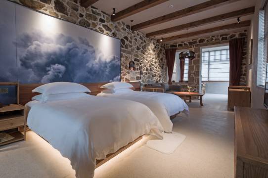 隆十二境客栈属于温岭兴隆集团旗下的高端民宿,坐落于千年曙光之地的石塘镇,位于滨海绿道珍珠滩商务度假区内,视野开阔,面朝大海。隆·十二境,在东方美学的精髓打造下,创建了禅意的素心卧房,将百年的岁月沉淀和现代人的舒适空间完美融合,形成了石屋与自然的和谐交融。