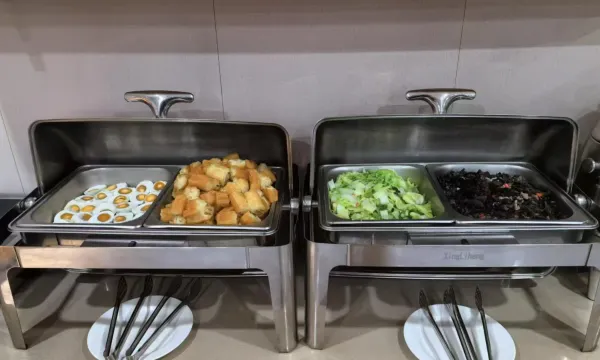 优点:早餐丰盛,牛奶,豆浆,鸡蛋,馒头,包子,油条,米线等。