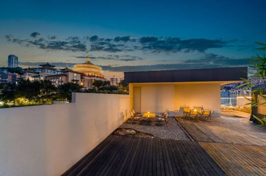 屋顶观景台:独享视角!在酒店屋顶,将国家级建筑人民大礼堂与山城绝美落日同框收藏,感受历史与浪漫的双重震撼。