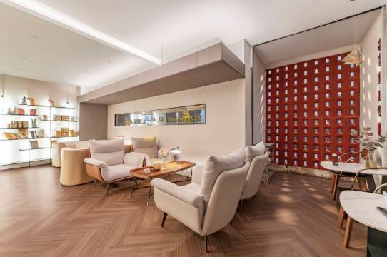 必须为这酒店的大厅设计疯狂打call!挑高空间配流线型灯带太有艺术感,整面落地窗将阳光和街景变成天然画布。文化背景墙隅字文化墙更是绝佳打卡点,光影层次美到失语。设计师绝对下了功夫,住这里拍照都能发三天朋友圈!