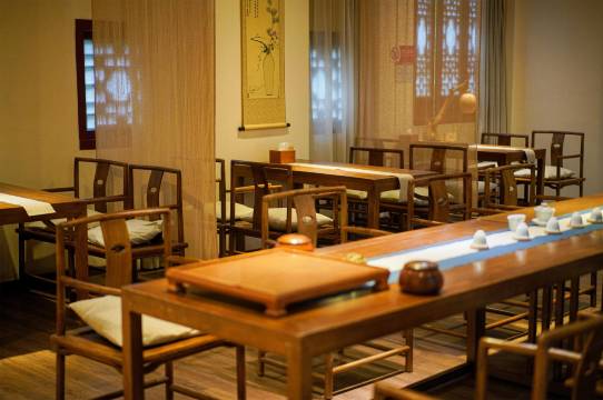 酒店以传承和发扬中国非遗文化古琴和箜篌为基础,,打造集琴道、茶道、花道、香道、中式服饰和传统文化交流为一体的人文中式美学。