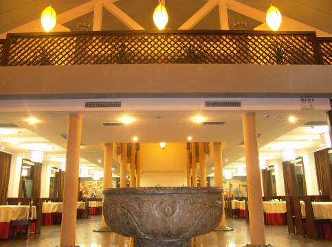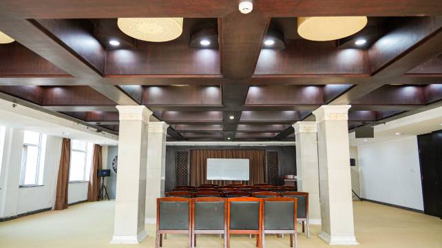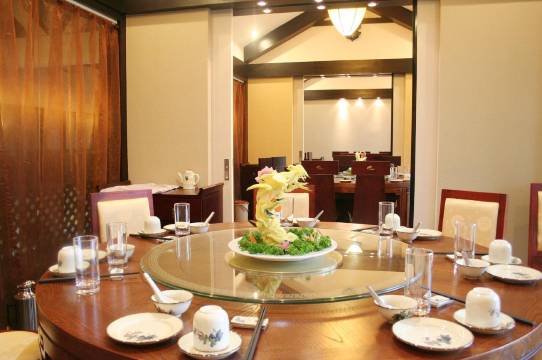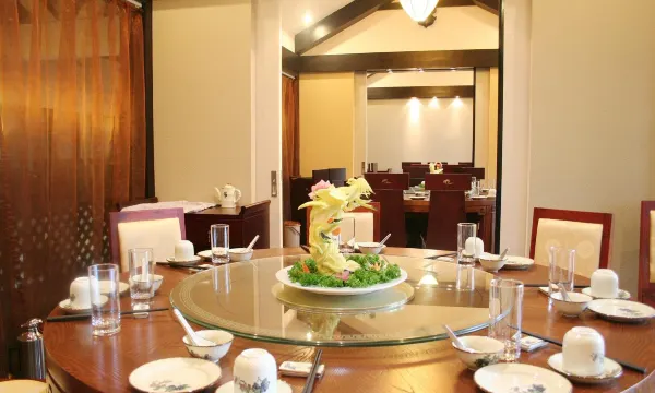 • 环境宜人:饭店为新中式风格,古色古香的白墙黛瓦式建筑与青松翠柏相互映衬,内部陈设中式家居,营造出淡然的氛围,让人身心放松。