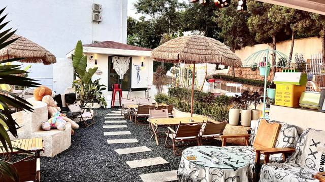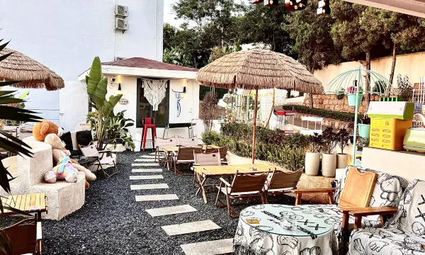 在朋友的推荐下来到这家民宿,说日落很漂亮🤩我准备留着下次看,入住时老板还送了两张鸡尾酒卡片,拿上在晚上9-12点可以到旁边的小酒馆喝一杯,氛围很好,和住宿一样,小酒馆也布满了各种鲜花和绿植,有趣的是第二天早餐也在那里吃,晚上和白天看,感觉完全不同❤️