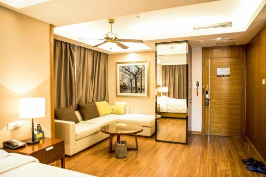 酒店位于海口市西海岸旅游度假区,毗邻海南国际会议展览中心、新海港、海口市政府、远大购物广场、海南省肿瘤医院、假日海滩、高尔夫球会、南港码头、五源河体育馆以及海口国际免税城,车程仅十几分钟便可到达以上位置。另酒店门口公交车站有81路、624、K5专线可供选择的公交路线,近可达是海口市政府、假日海滩、海口火车站,远可至海口日月广场、海口西站、海口高铁东站等地,交通非常便利。 酒店是一家集住宿、餐饮、康体于一体的综合性商务度假酒店。酒店内含中餐厅、豪华包厢、棋牌室、以及小型会议室、健身器材、游泳池等配套设施。 酒店设有多种客房。面积在50平米左右,具有时尚、温馨、适合典雅的公寓风格。每个房间都有开放性的阳台和厨房,充分体现了简洁的现代设计。酒店还专门特设了充满童趣的亲子房和能缓解压力疲劳的沐足馆以满足广大客人的不同需求。客房均可提供24小时热水淋浴、空调、液晶电视、无线WIFI等。 酒店在设施与服务上用足功夫,每个细节均精心设计,每种需要都周到细致,是理想的商务出差、度假休闲、居家亲子的好去处。