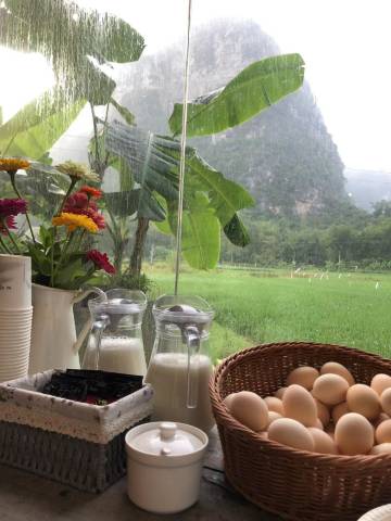 从房间往外望去的景色太不错啦!很喜欢。服务态度也很好。早餐的粉第一次吃这种口感的 吃了两天的粉 挺喜欢的,做饭的阿姨好温柔哦
