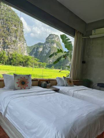 🏡✨很宠物友好!这次入住崇左漫步田园民宿真的太惊喜了!位置绝佳,就在山水之间,推开窗就是喀斯特地貌的绝美风景,仿佛住在画里🍃💚。前台小姐姐超热情,一进门就笑着迎接,对狗狗很友好,还贴心地介绍了周边游玩路线🗺️😊。早餐三楼自助,起晚了还可以吃阿姨煮的粉,可以安心睡懒觉。