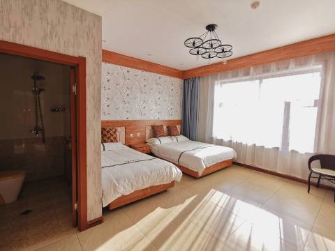 五一假期几个朋友商量来一个说走就走的假期游,网上查了挺多家店,最后选了这家,评价不多,但是规模挺大环境看起来也挺好的,来了以后感觉自己选的没错,房间装修挺有特色,干净整洁,距离滑雪场熊猫馆温泉都特别近,很方便,老板还给我们订了景区的优惠门票,超级给力,最主要的是五一天气冷老板给整个房子供暖了,强烈推荐这家店。