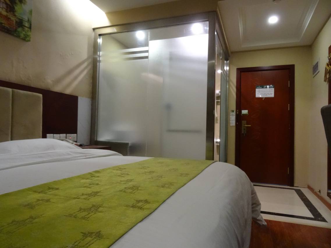 格林豪泰酒店环境挺好,房间干净整洁,洗澡水很舒服,有很大的停车场,入住体验挺好的。