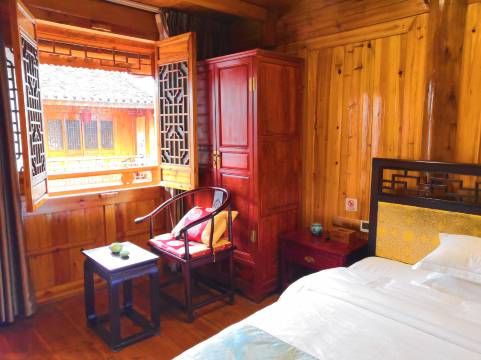 客栈是木房子,一房一厅空间很大,四合院的设计特别有感觉,门和窗户都是老式的开关方式