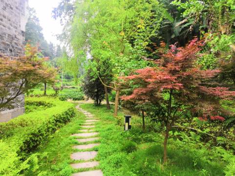 仿古建筑,环境优雅。酒店后面就是稻田和古井,晚上入睡能听见虫鸣和鸟叫。
