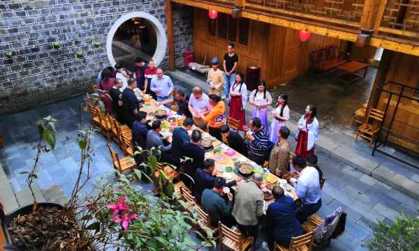 龙标客栈坐落在锦屏县隆里古城东门游客中心旁,是一家按酒店星级标准打造的一家国有独资的客栈。外部青砖白瓦内部全木式结构背靠荷花池,天井开阔,窗雕精细,风格朴实,精致典雅。客栈是按照本地民居建筑风格建造的宅院,也是西南边境少有的窨子屋建筑风格。距离隆里古城东门仅200米,是你在隆里古城住宿的不二之选。