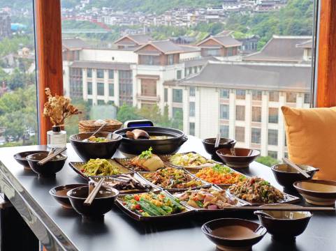 酒店全景餐厅及270度观景平台,可以观看到茅台镇90%以上的景观。
