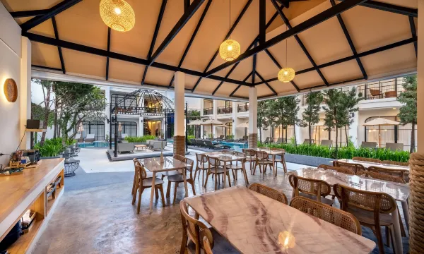 这家酒店就在拜县主要区域,非常现代化,设施一流,还有游泳池。