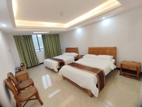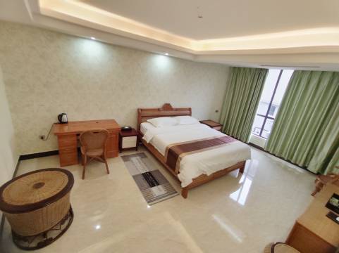 设施齐全,房间布置温馨整洁,工艺藤床和沙发别具匠心,温泉池设计优美舒适,价格公道实惠,非常适合度假、旅游、集体团建活动等。