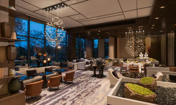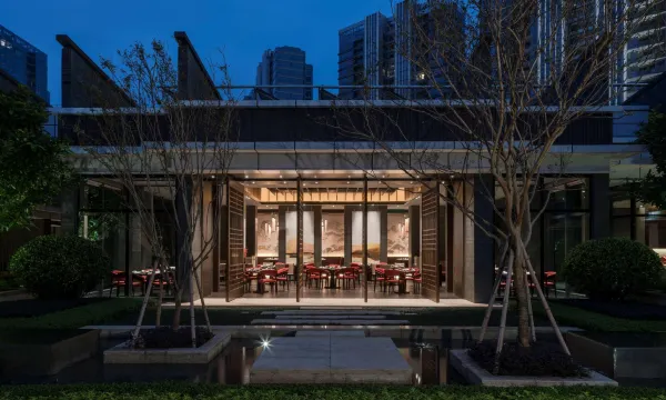 酒店设计灵感来源于闽中园林及当地传统院落建筑特色,以福州市花“茉莉花”为设计主题,设有中央花园及沿江慢跑步道,是一座传统与现代设计结合的艺术宅邸。