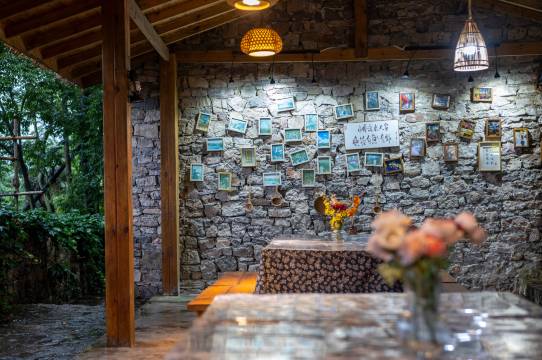 民宿藏在深林之中,被云雾和绿意环绕,石头砌成的寨子古朴又温馨,仿佛住进童话森林。清晨推窗见云海,夜晚抬头赏星空,随手一拍都是大片,房间设计既保留了原始石屋的粗犷感,又融入了现代舒适设施(地暖、智能马桶加分!),床品柔软干净,连认床的我都一夜好眠,管家会带客人徒步探秘周边森林,讲解植物知识;傍晚在篝火边烤红薯、听民谣,彻底逃离城市喧嚣。
