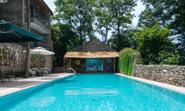 在安顺布依族石头寨景区内,藏着一座宛如世外桃源般的云端石头寨深林民宿,距黄果树瀑布景区仅约十分钟车程,轻松串联起自然与人文的双重盛宴。六百年前,布依族先人就地取石,以巧思匠心搭建起鳞次栉比的石屋建筑,这些石屋历经岁月雕琢,沉淀着深厚的历史底蕴。2018年,几位设计师踏入这片被时光遗忘的山林,瞬间被其宁静质朴所打动,“山中无甲子,寒尽不知年”,在惊叹先人智慧的同时,也深深着迷于布依族独特的文化。神石许愿的神秘、蜡染艺术的精妙、跳场的热烈、请花杆的庄重、酒药制作的独特、打滋粑的温馨……这些文化瑰宝,让设计师决心重建石头寨,让古老的文化焕发出新的生机。云端石头寨深林民宿应运而生。在保留石屋原貌的基础上,融入现代舒适理念,打造出20余间风格各异的客房,满足不同宾客的需求。民宿设施丰富多样,火塘餐饮区弥漫着布依美食的香气,让您品尝地道风味;神石许愿处承载着美好期许;星空间里可仰望浩瀚星空;屋顶咖啡与茶室,是放松身心的世外桃源;景观泳池碧波荡漾,亲子乐园充满欢声笑语,蜡染体验区让您亲手感受布依族传统技艺的魅力。在这里,您不仅能享受高品质的住宿体验,更能深入感受布依族文化的独特魅力,开启一场难忘的少数民族文化之旅。我在云端石头寨深林民宿等您,让神石为您降福,共赴这场布依之约!