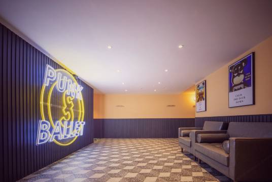 朋克芭蕾酒店位于泰州市海陵区商业中心5楼西南入口电梯直达5楼,邻近于泰州一百,坡子街商业街,金鹰时尚购物商场,稻河古街,老街,茂业天地,滨河广场等大型综合商业体和海陵学校、智堡实验学校等考点; 酒店经过设计师精心改造和设计,以其呈现出的怀旧工业感及当下流行的Instagram设计风格,吸引了不同年龄段的高品质客户; 酒店拥有一系列独特设计风格的客房,房内柔软的织物和简约的家具缓和了苛刻的工业感,营造出舒适的居住空间,让每一位客人都有宾至如归的感觉。每间客房都是以不同的风格装饰,讲述着不同的故事。就像酒店说的那样:编制自己的故事,为每次入住提供全新的体验; 正如品牌名一样,在矛盾中剥离出平衡,在冲突中迸发出灵感。就像我们的生活,用看似妥协去做每一次的突破;这里做的是懂你的酒店:1080P高清投影装置、独立弹簧无压乳胶床垫和无压乳胶枕已为您配备到每间客房,床品和毛巾更是采购自Ritz-Carlton产品供应商,每间客房独立50M无线网络。您能看到和看不到的都是我们的真诚与贴心。 设计师采用大量莫兰迪低饱和色系打造出整个酒店公共区域的色彩空间感,这种自带气场的高级色系让住客视觉达到平衡。平和自持、舒缓雅致有时略带冷静的感觉,却让人越看越喜欢。
