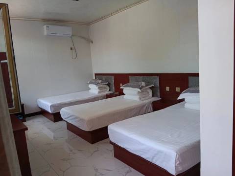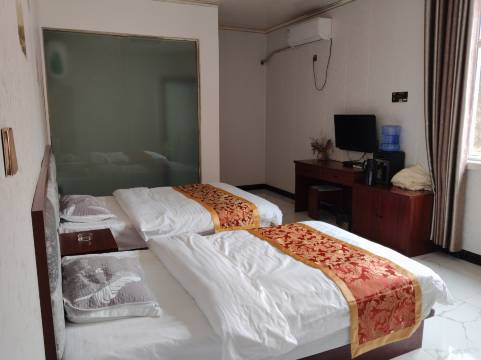 房间三张1.2的床或者1.2+2.0的床,干净卫生,很安静,不许空调和风扇,盖着被子睡得很舒服。第二天一早还免费送我们去景区门口,告知自己开车没地方停避免了无处停车的尴尬。