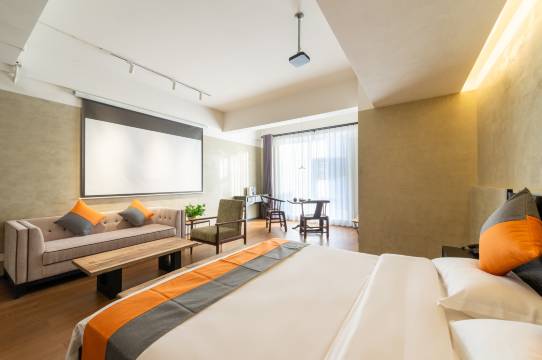 酒店轻工业装修风格,简约而不失豪华的客房,配有中央空调、地暖、茶桌、茶具、茶叶、小米水壶、小米音箱、24小时热水、部分房间更配有投影设备,酒店设有停车场、电车充电桩、洗衣房,休闲区配有茶室、约上三五好友下一盘棋,喝杯茶,另配有大小会议室,园区内可以紫砂手工DIY和购买紫砂产品,经济实惠,品美味咖啡,享休闲时光,酒店是您结伴出游、居家旅行、休闲度假的下榻优选。