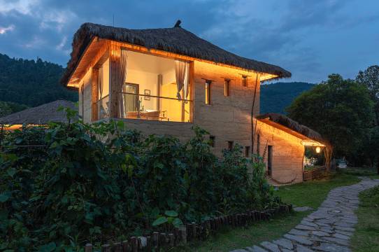 民宿一期共二十余间客房,客房分为上下两层,一楼客房有独立农家小院,二楼客房有超大露天阳台,民宿四周则是瑶族同胞种植的有机菜园,一片生机盎然。民宿同时还配备了大型停车场和可容纳约200人的标椎会议室更是成为公司拓展训练和年会团建的优选之地。