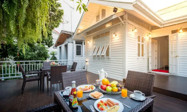 很特别的住宿环境,他是一间古老洋楼,虽然位置在一条肮脏的巷子内,但可以体验老式建筑的乐趣,走路10分钟就可以到考山街,巷子口出去就有很多美食,还有7-11也在路口,生活机能都很方便,早餐式套餐式的,口味很棒也很丰富,是一个不错的体验,但因为是老式建筑,所以隔音不太好,房间外有人走动都可以听到木地板发出的声音,一定要放轻脚步才行