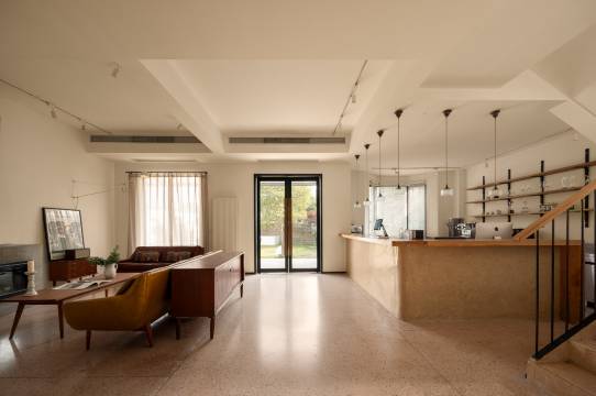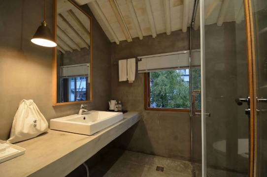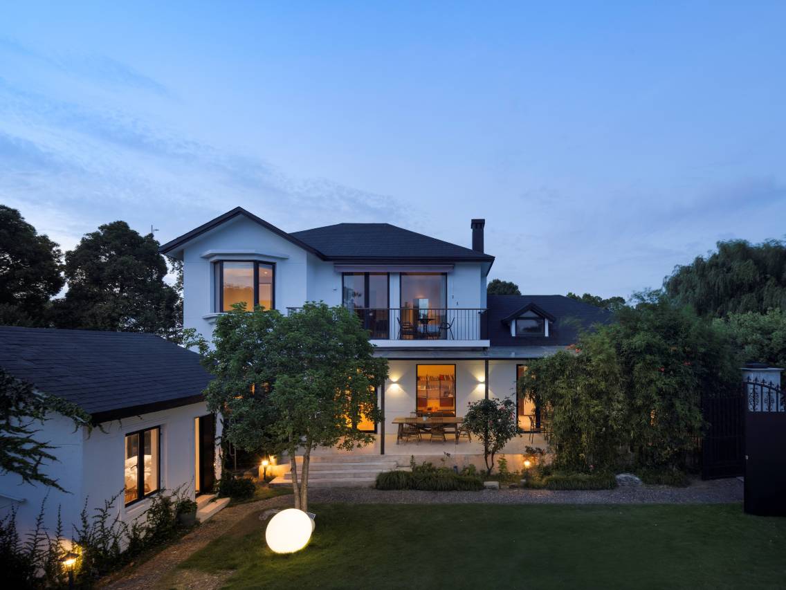虚舍临近太湖国家风景区。一共分为两个院子,一号院是已经十年的乡间洋房搭配超大的草坪,二号院是简约的日式风格,搭配枯山水的庭院。“好的设计作品,是使人生活幸福的设计作品。”在这里,日式和北欧的简约、舒适、经典的元素,被设计师完美融合。室内空间延续了张健简约质朴的设计风格,在低调的淡然中,表达着对生活的理解与品位。来到这里,会很容易安静和放松下来。走进一号院的共享空间,是设计师主导设置的对外开放的咖啡厅、家庭式客餐厅和厨房,开放的厨房可以提供给客人自己料理。一号院布置了6间客房,大大小小,风格迥异,可以看山、可以看湖,可以有自己的迷你花园、可以在阳台上泡澡、也可以伴着绿廊的夜灯听雨,尽享无边风趣。二号庭院作了枯山水处理,一楼空间独立的入户门设计,曲径通幽、移步换景。二楼超大的共享露台和每个房间的外搭阳台,带给室外较佳的延伸互动空间,近观太湖、远眺群山。白天可以懒散的晒晒太阳发发呆,晚上可以伴着漫天的繁星和皎洁的月光,喝茶聊天,静听湖水拍岸、鸟叫虫鸣。除住宿餐饮外,还适合登山,骑车,垂钓等专为崇尚大自然,期望远离喧嚣的都市人群提供非凡体验。
