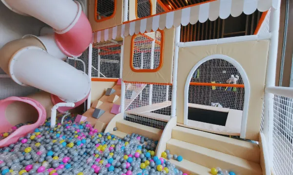 房间隔壁就是萌宠乐园和户外游乐设施,可以荡秋千喂小动物,小朋友很喜欢。室内也有一个小小的儿童乐园,有滑滑梯和海洋球。