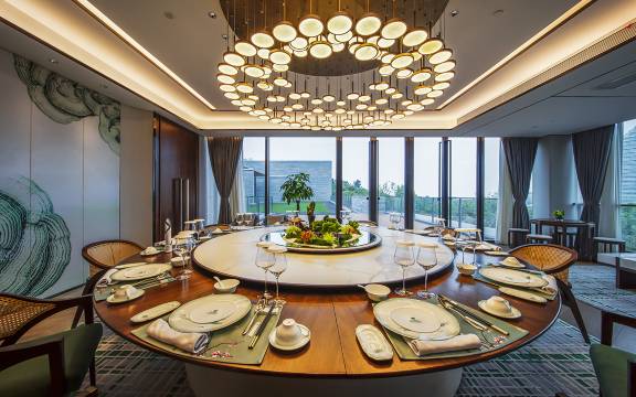 入住体验满意,7楼大堂观景台正对月亮酒店,新中式客房宽敞雅致,欢迎水果、首轮迷你吧免费,细节拉满。管家云云服务贴心问有没有什么物品补充,园区接驳车随叫随到,萌宠乐园、恒温泳池、趣野营地超适合亲子,早餐品种丰富有本地特色。环境清幽,空气清新,服务暖心,推荐入住