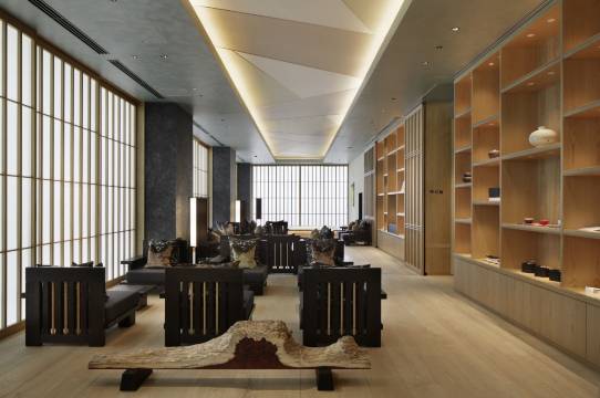 日式风格,从入门的换鞋到房间的榻榻米设计,每一层均有服务休息的区域满足该层各房间房客的需求。