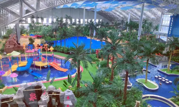 温泉区共设大小汤池42个。室内以热带园林风光为温泉主题,结合当地山区盛产的中草药资源,设有水疗池,集人参泉、灵芝泉、黄芪。