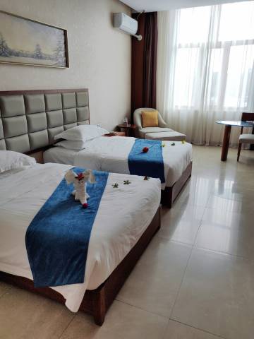 超级推荐这家酒店,入住免费升级,赠送2位汗蒸,酒店的汗蒸值得强推,有很大的儿童温水玩水游泳池,各种药汤池,有玫瑰池,黄芪池,小鱼池,还有室外温泉池,当你泡在池中,池边就是白雪皑皑的积雪和挂雪的松树。很大的汗蒸屋,池边的服务员态度都非常热情情切,特别是服务员武姐,非常贴心。如果下次去亚布力还会选这家,并且推荐给朋友。