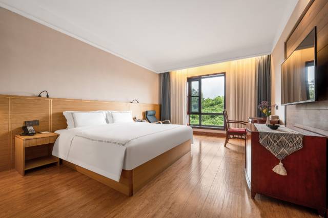 此外,你还可携带家人和友人体验全方位的非遗文化,观看非遗藏品、体验非遗游线,并品尝非遗美食。酒店还拥有众多餐饮和休闲设施,提供中餐、西餐和原生态烧烤服务,提供影视厅、网球场和音乐吧等服务,让你的度假生活丰富多彩。酒店配备的华邦大型宴会厅和各类型会议室,可带来完美的会议体验。