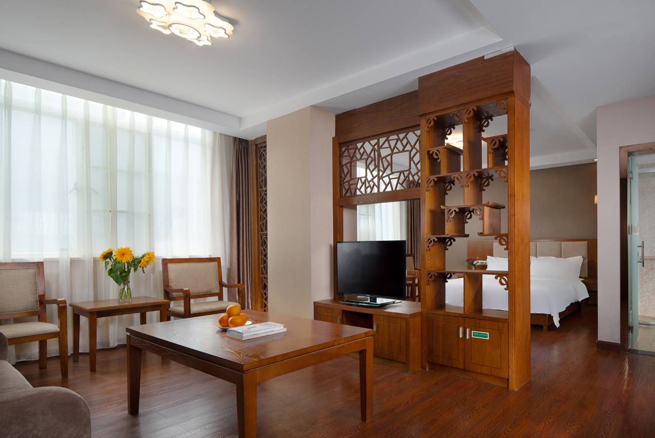 酒店共有多种高品质房型供您选择。酒店配有免费高铁站接送、免费停车场、光纤高速免费上网、冷暖空调、24小时热水。此外酒店拥有可容纳120人就餐的中西式餐厅及小型会议室。