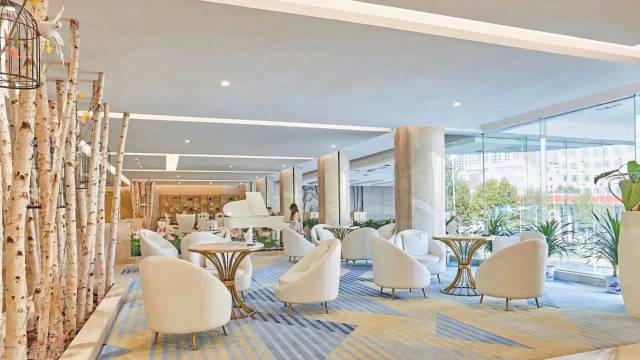 清晨的阳光透过落地窗,在米色的地毯上投下斑驳的光影。推开玻璃门,露台上的藤椅正等待着一杯手冲咖啡的温度。房间里,智能恒温系统早已将空气调节至最舒适的22度,床品的触感如同云朵般柔软。午后,漫步至酒店的空中花园,潺潺流水与绿植交织成自然的乐章。傍晚时分,