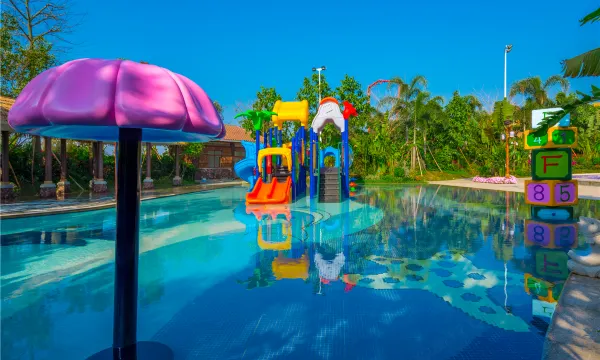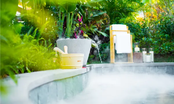 酒店拥有大规模的温泉池群(天然偏硅酸温泉),适合全季候、全龄层浸泡。室外拥有百余个精心雕琢的温泉泡池,错落有致的立于溪谷秘境之中。酒店所有客房和别墅,均配有入室温泉泡池,宾客可于独立空间感受耳听微风吹拂翠林、身享“温泉水滑洗凝脂”的尊贵私密时光。