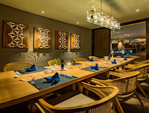 酒店致力为阁下创造舒适、愉悦、高端、专业的度假体验,提供完善配套设施及服务,汇聚天下名菜的中西餐厅、设施齐全的健身房、山间露天泳池、高端大气的会议室、手法精妙的SPA中心逐步开放,将满足你休闲度假或商务会议的不同需求。